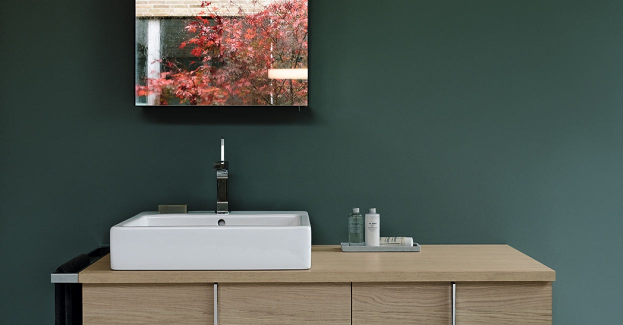 Lavatorio monocomando semi-encastre 55 x 46.5 cm.