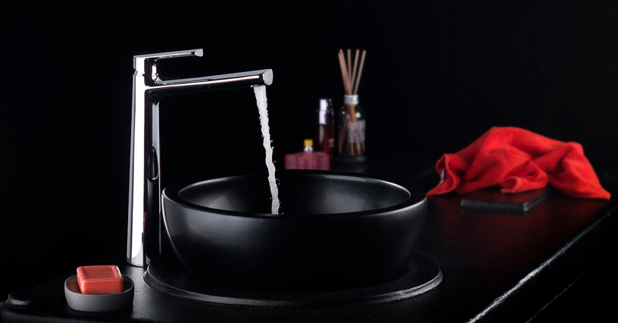 Juego monocomando para bachas tipo vessel Negro Mate