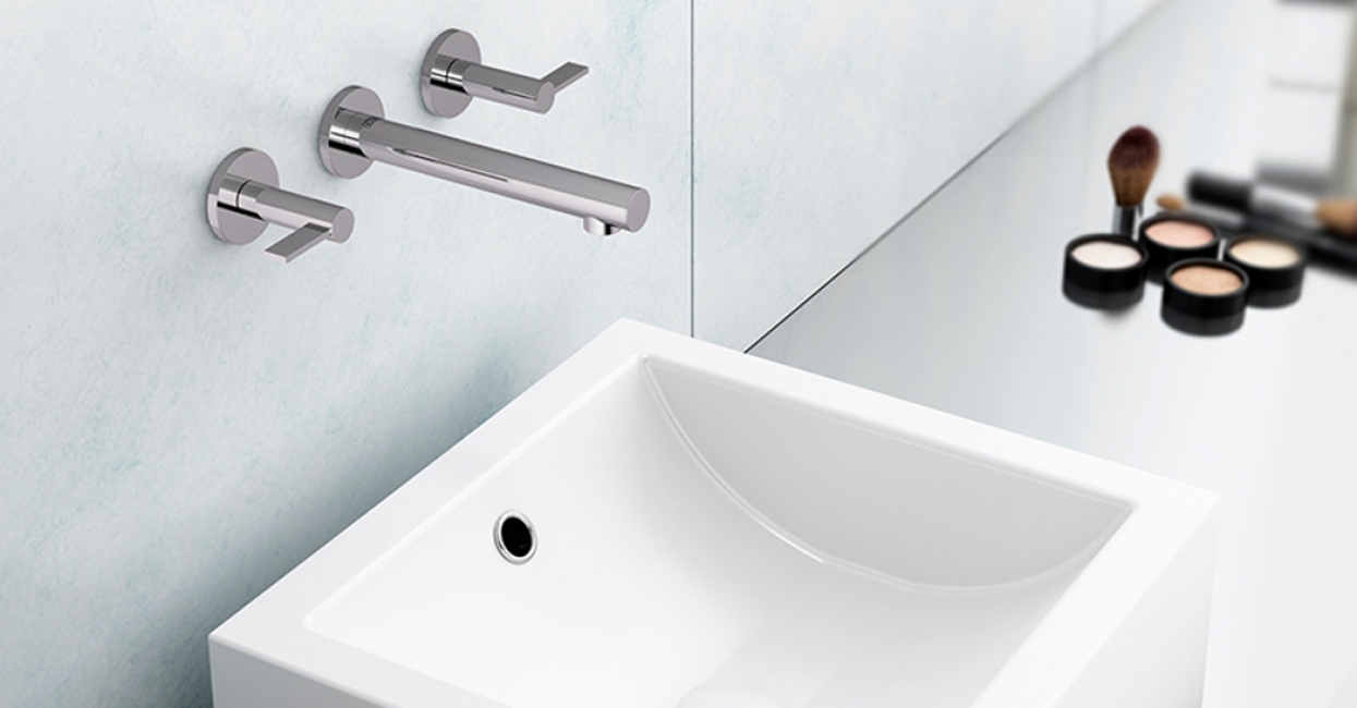 Juego lavatorio de pared con desagüe “Soft touch”
